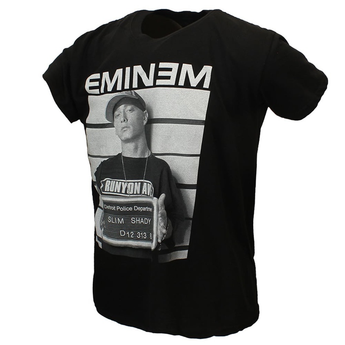 A 100% officially licensed Eminem T-Shirt. This Eminem Arrest T-Shirt is available in different sizes and is made of soft and comfortable cotton. On the front of the shirt is a large screen print of Eminem’s mugshot.