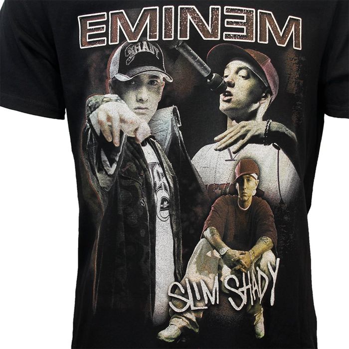 This Eminem Slim Shady Marshall Mathers Collage T-Shirt is an officially licensed T-Shirt from the rapper Eminem. The design of the shirt has a high-quality print with photos of Marshall Mathers in a collage. A must have for Eminem fans. Eminem has been in the rap game for a very long time, he recently released a new song called Houdini.