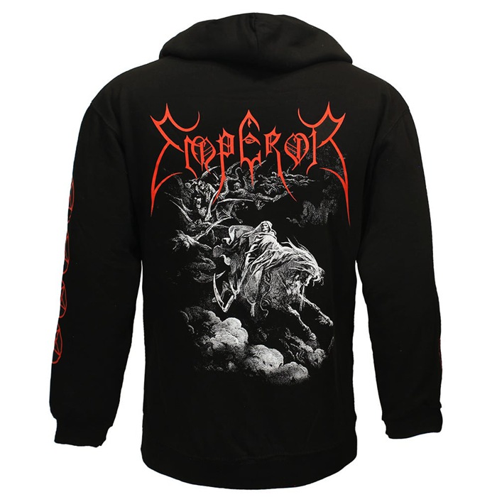 Emperor Rider Hoodie SweaterThis Emperor Rider Hoodie Sweater is an official merchandise item from the band Emperor. Emperor is one of the most famous black metal bands around. The prints are screen printed so they will always stay in place perfectly. At we have an extensive collection of merchandise from more than 200 different band…