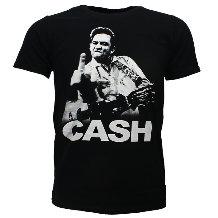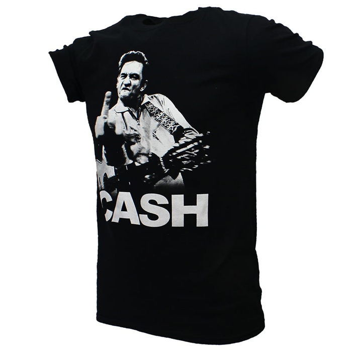 A beautiful original T-Shirt from the legendary Folk & Country singer Johnny Cash! This shirt has the famous print of him with his middle finger. This shirt is available in different sizes from size S to size XXL. Johnny Cash has been married for a while to the well-known country singer June Carter.