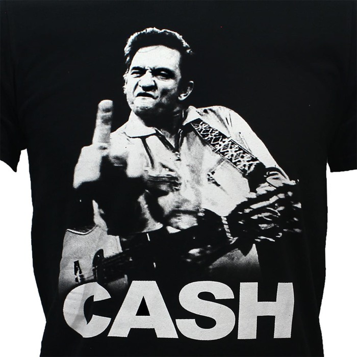 A beautiful original T-Shirt from the legendary Folk & Country singer Johnny Cash! This shirt has the famous print of him with his middle finger. This shirt is available in different sizes from size S to size XXL. Johnny Cash has been married for a while to the well-known country singer June Carter….