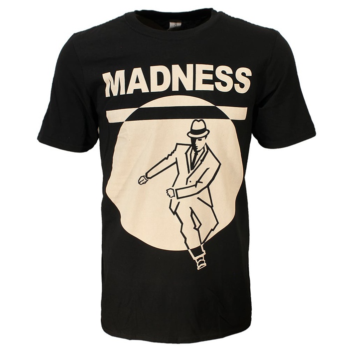 A 100% official band T-Shirt from the Ska band Madness with the Dancing Man design motif on the front. This high quality shirt is available in this black version and in different sizes.