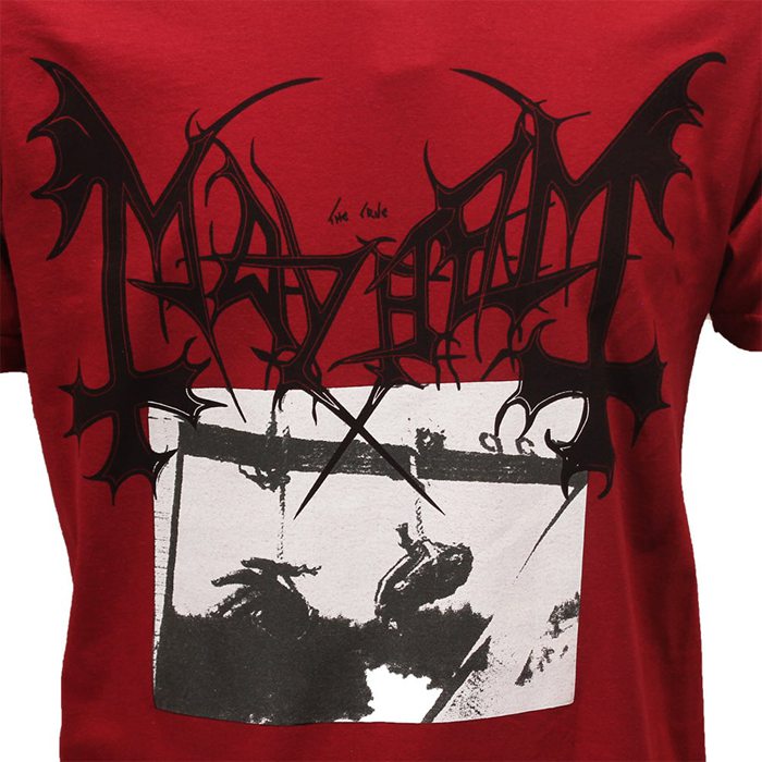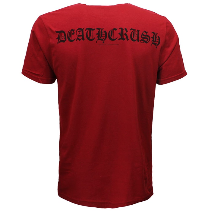 This Mayhem Deathcrush T-Shirt is an official band shirt of the Norwegian black metal band Mayhem. This shirt has a high quality screen print on the front and on the back. This shirt is from the album Deathcrush. Available from size M to XXL. Made of 100% cotton.