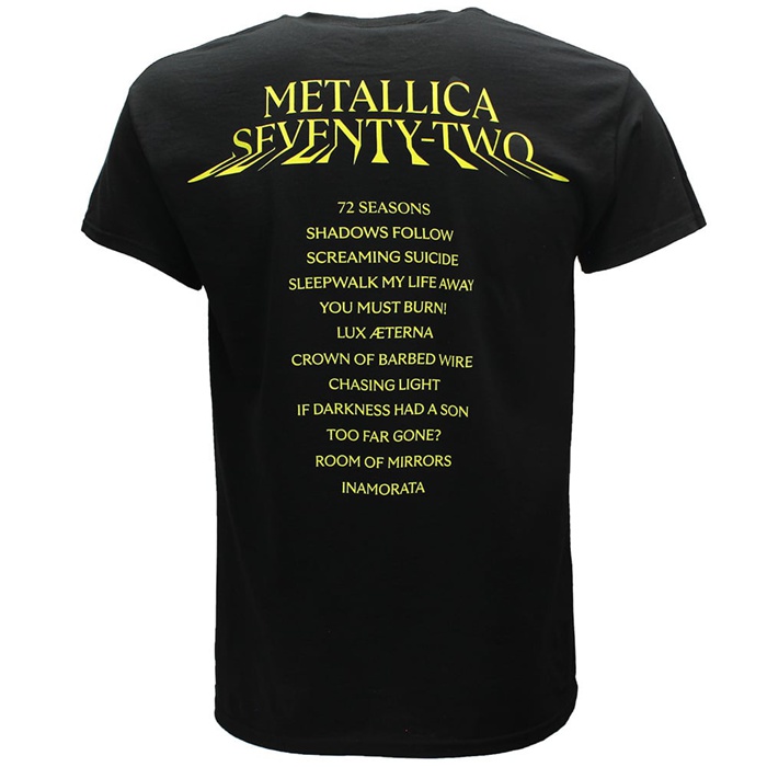 If you order this Metallica 72 Seasons Burnt Crib T-Shirt on a working day before 6:00 PM, we will ship your order on the same day. This way you can enjoy your new merchandise the next day. All merchandise we sell at is original and of the best quality. This shirt is screen printed so that the print stays on perfectly. The shirt is made of 100% cotton.