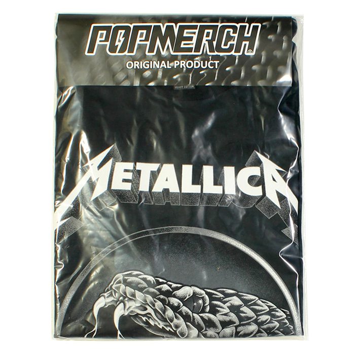 If you order this Metallica Black Album Snake T-Shirt from us on workdays before 6:00 PM, we will ship your order on the same day. This means you will receive all your new merchandise the next day and you can start enjoying it extra quickly. All merchandise we sell at is original and of the best quality. This shirt has short sleeves and a crew neck collar.