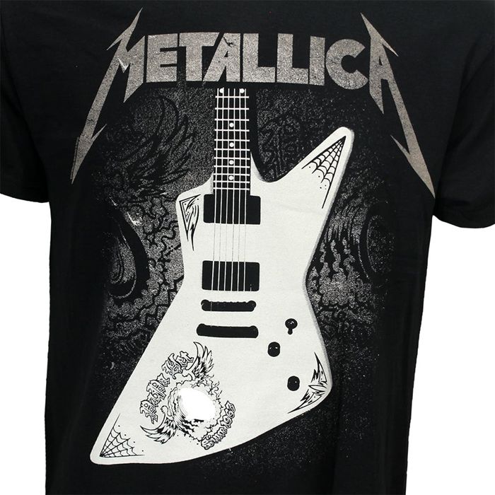Metallica Papa The Guitar T-ShirtThis Metallica Papa The Guitar T-Shirt is an official band shirt of the American metal band Metallica. The shirt features a large print of singer and guitarist James Hetfield’s guitar. The band’s logo is also depicted on the top. Metallica was founded in the year 1981 in Los Angeles. The band recently released a n…