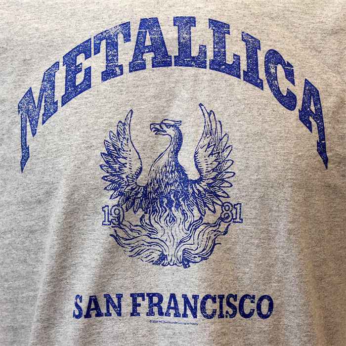 This Metallica San Francisco College T-Shirt is an officially licensed band T-shirt from the metal band Metallica. The T-Shirt is gray in color and has the ‘San Francisco College Crest’ design printed on it. Available in different sizes.