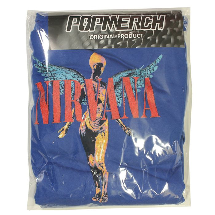Nirvana Angelic Band Hoodie Sweater BlueThis Nirvana Angelic Band Hoodie Sweater Blue is an official band hoodie from the grunge band Nirvana. This sweater is blue and has the Angelic design as a screen print on the front. Available in different sizes from size S to size XXL. Nirvana was founded by Kurt Cobain and Krist Novoselic in the year 1987…