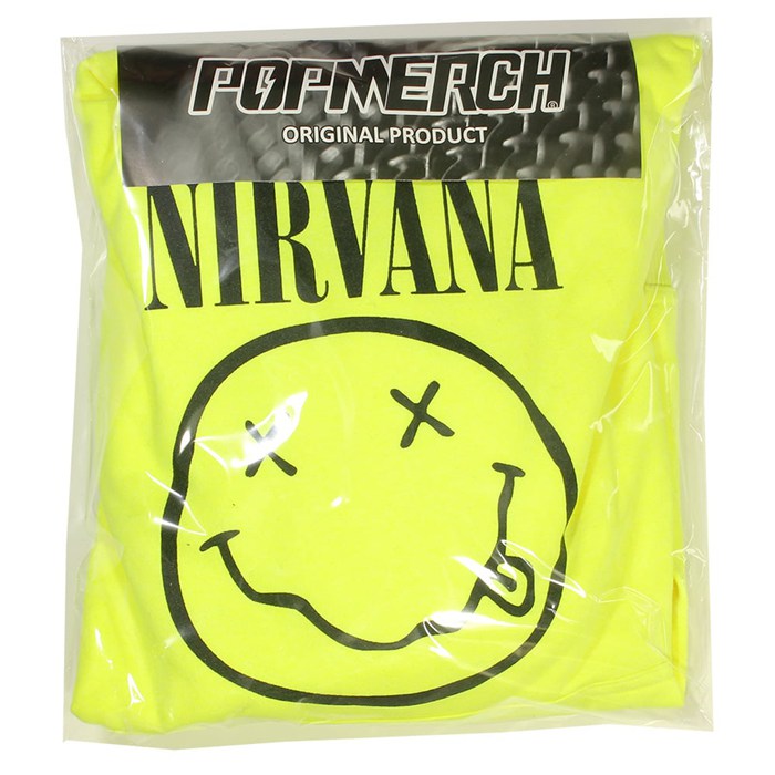 This Nirvana Neon Yellow Smiley Hoodie Pullover Sweater is an official band hoodie from the grunge band Nirvana. On the hoodie is the characteristic smiley that is characteristic of Nirvana. The sweater is available in different sizes from S to XXL. Nirvana was founded by Kurt Cobain and Krist Novoselic. Later Dave Grohl joined as drummer.