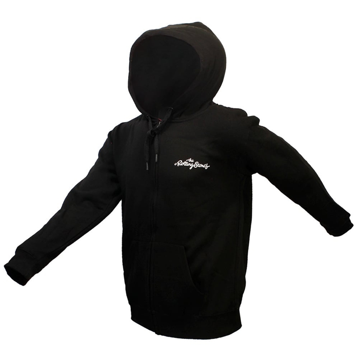 The Rolling Stones Tongue and Lips Logo Zipper Hoodie Sweater Jacket BlackThis Black zipper hoodie features a design of the logo of the British rock and roll band The Rolling Stones with the Tongue and Lips design. It has a text logo on the chest and the tongue logo on the back. The Rolling Stones are known for many hits like “Sympathy For The De…