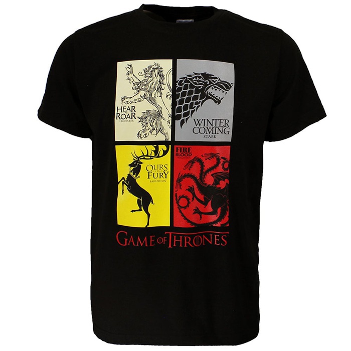 A super nice official Game of Thrones Heirs to the Throne T-Shirt with the families on the front who are all fighting for the Iron Throne. Who do you think deserves to be Lord of the Seven Kingdoms? Jon Snow? The shirt is available in the sizes small to XL….