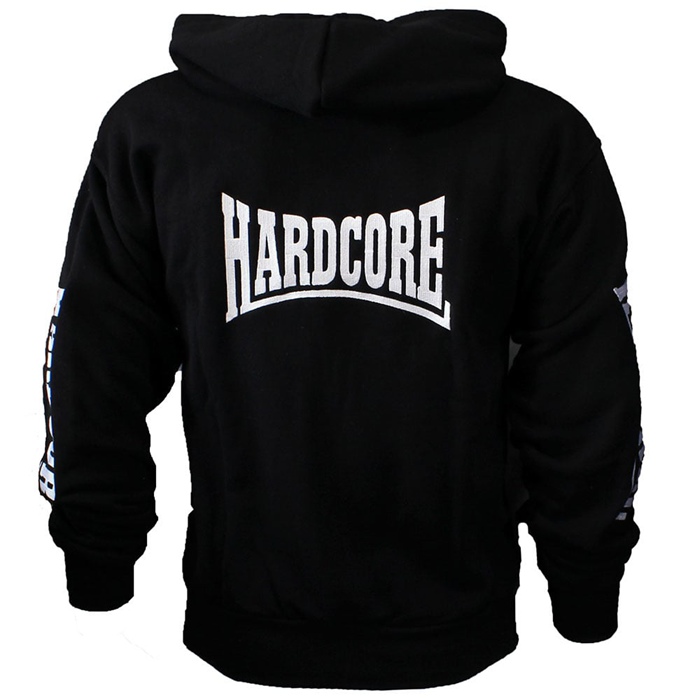 A beautiful Hardcorejacket of high quality in the color black. The zipperhoodie has a large logo on the sleeves, on the back and a small logo on the chest. The jacket is available in sizes XS (152) up to and including XXXL. The hoodie has a zipper and a hood and it’s very nice and warm! Has a board falls a bit short buy one size bigger.