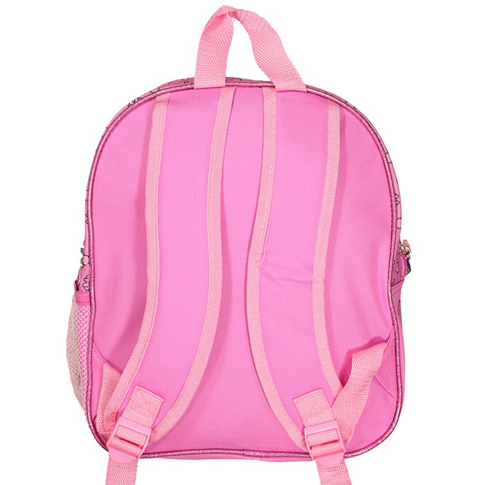 This small pink backpack from Disney has a Minnie Mouse Motif. The front features an image of Minnie Mouse accompanied by flowers and the text “Love, Minnie”. The bag has two side pockets, a hanging loop, adjustable shoulder straps and a cute Minnie detail on the zipper. Minnie Mouse is the girlfriend of Mickey Mouse. Mickey and Minnie Mouse have been popular since 1928!